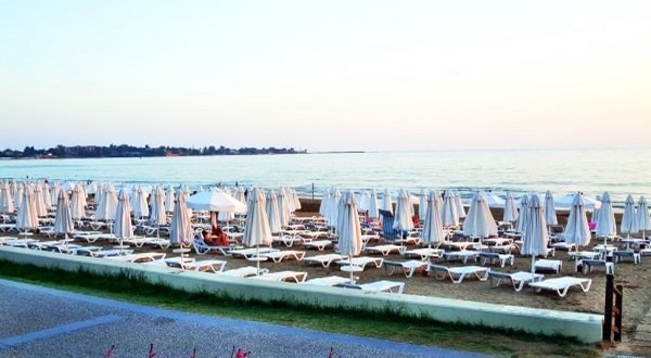 İnce kum özelikteki plaj içerisinde ücretsiz şezlong, şemsiye ve