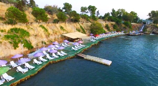 Otelin önünde 250 mt uzunluğunda sahili vardır. Ege denizinin harika mavi sularında yüzme dinlenme imkanı. plajda otel konuklarına sunulan şezlong ve şemsiye hizmeti ücretsizdir.