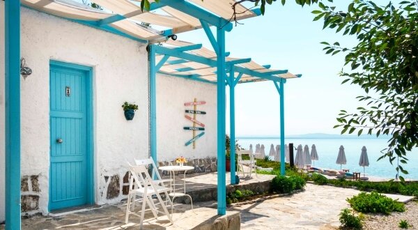 Bozcaada da denize sıfır olan Pelagos otel 300mt sahil bantlı özel koyda