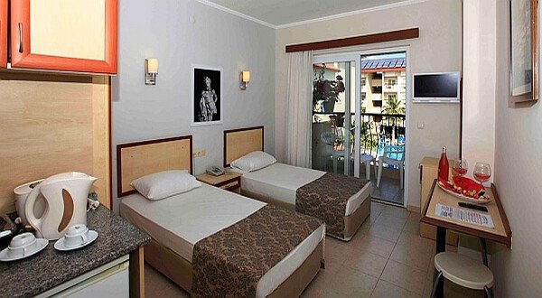 Tüm odalarında, klima, satelite TV , safe kasası,havuz manzaralı balkon, buzdolabı, mutfak ekipmanları- kettle, toaster- , direkt telefon Bulunmaktadır. Ailece Çok Rahat Bir Şekilde Kalış Yapabilirsiniz.