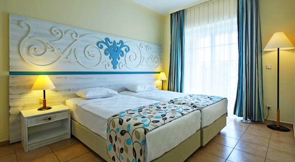konuklarının istek ve zevklerine göre her yıl değişen dizaynlar ile hizmet veren 586 odaya sahip Euphoria Palm Beach Resort, Executive, Suit, Standart ve ailelere özel genişlikte Aile Odalarıyla yüksek konfor ile hizmet vermektedir. Su kaydıraklı Side tatil yerleri arasında doğa tatil yeri olarak sıklıkla tercih edilmesinde, odalarının muhteşem manzaralara sahip olması da değerlendirilmektedir.